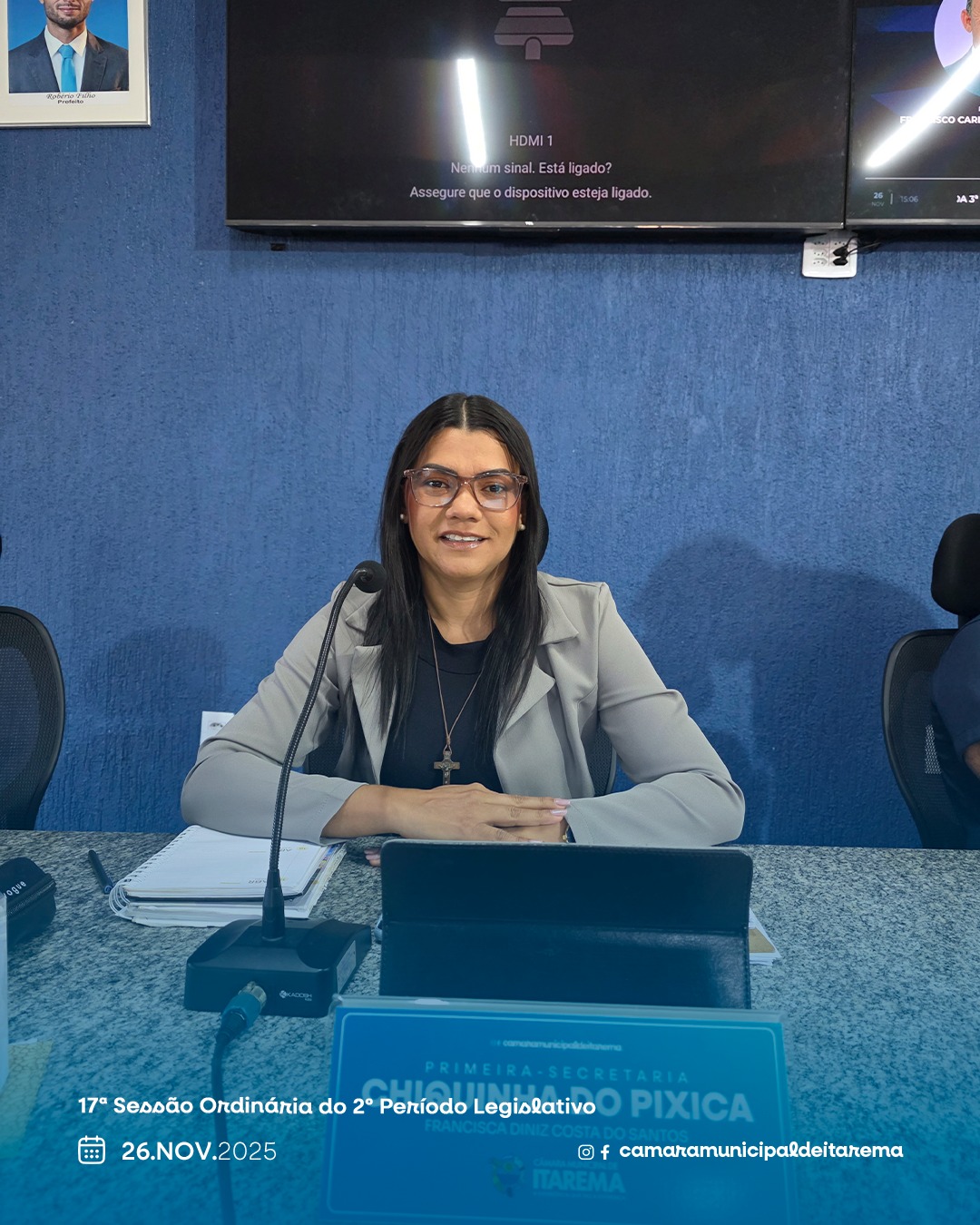 Na 17ª Sessão Ordinária do 2º Período da 1ª Sessão Legislativa da 3ª Legislatura, realizada na quarta-feira, 26 de novembro de 2025, a Câmara Municipal de Itarema, sob a condução da Diretora Legislativa Flaviana Oliveira Santos, apreciou e aprovou matérias voltadas ao reconhecimento de cidadãos, à responsabilidade fiscal e às demandas de infraestrutura hídrica do município.