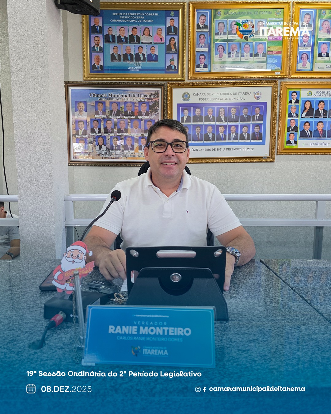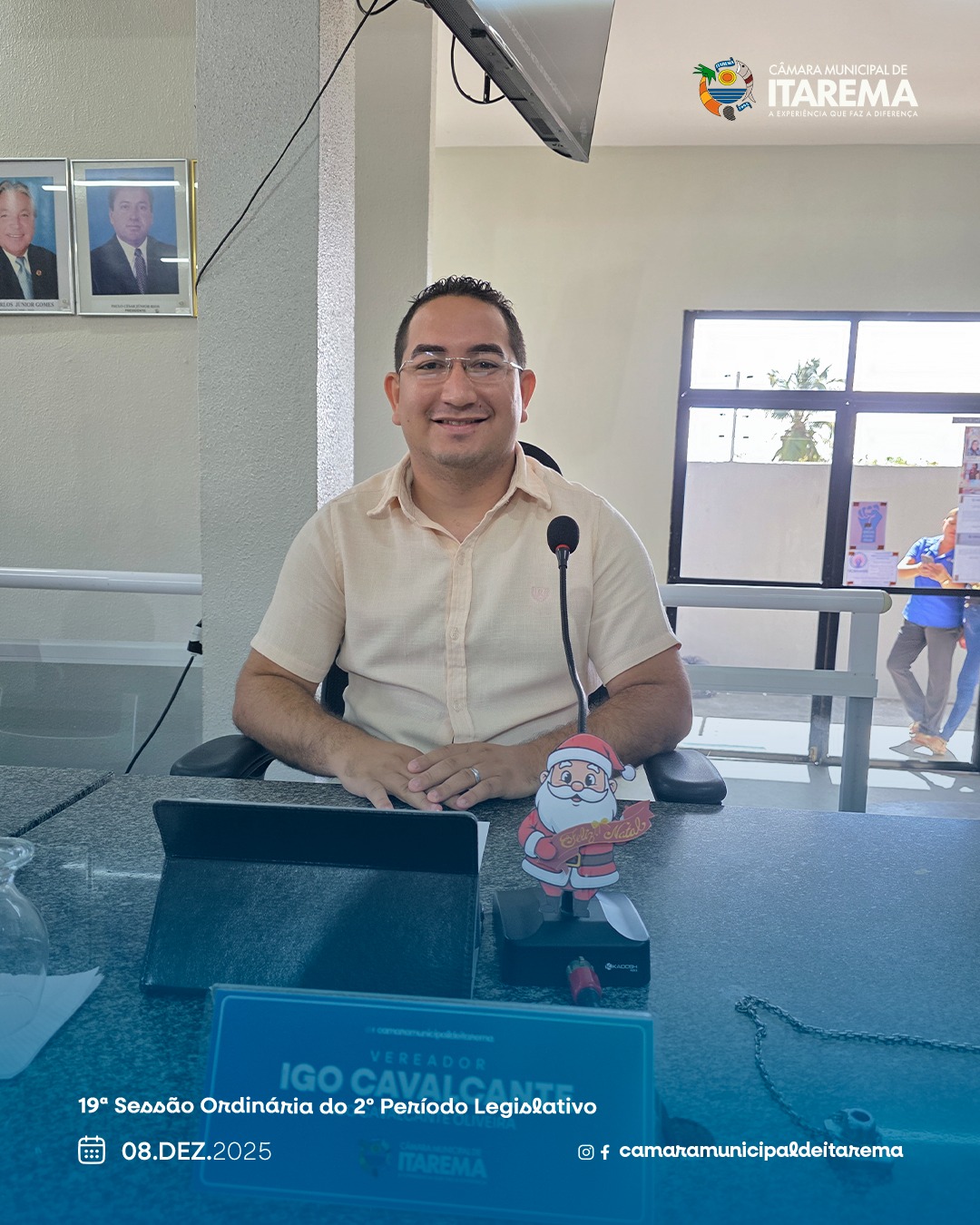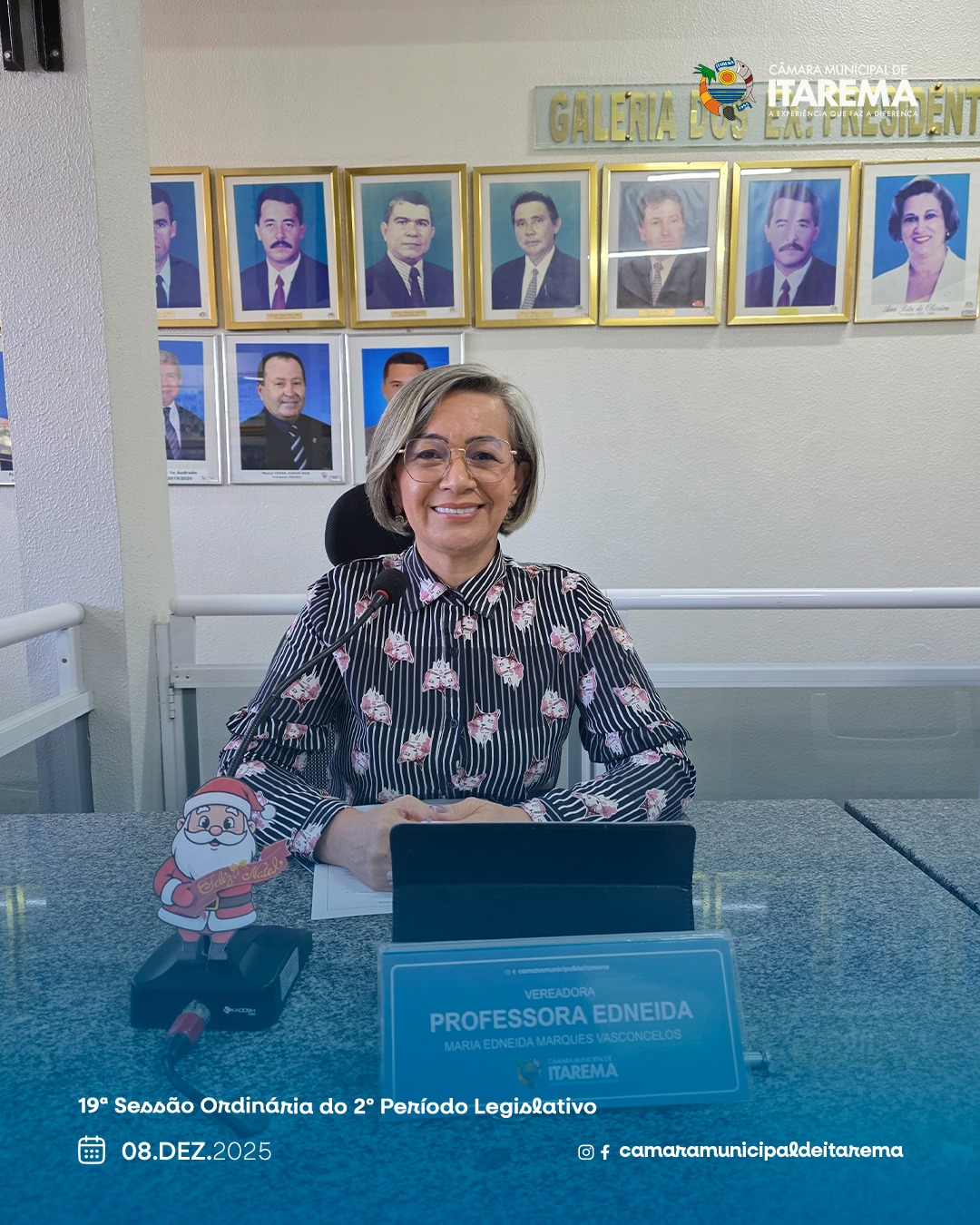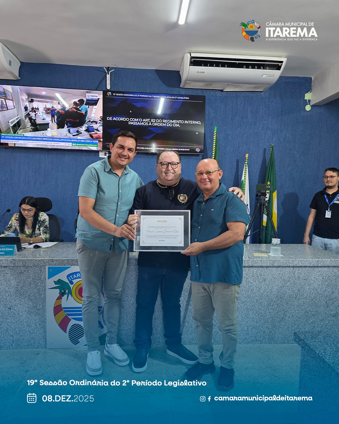 Na 19ª Sessão Ordinária do 2º Período da 1ª Sessão Legislativa da 3ª Legislatura, a Câmara Municipal de Itarema, presidida pelo vereador Carlinhos Beja, apreciou matérias voltadas ao reconhecimento de cidadãos e ao aperfeiçoamento administrativo da gestão pública. A sessão também contou com um momento solene de homenagem.