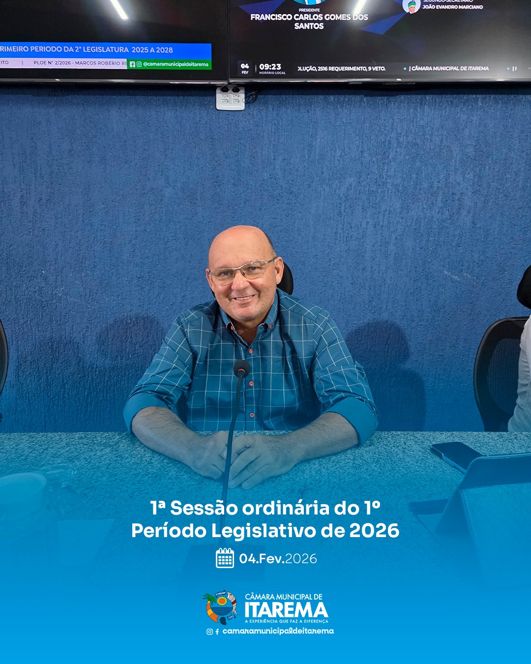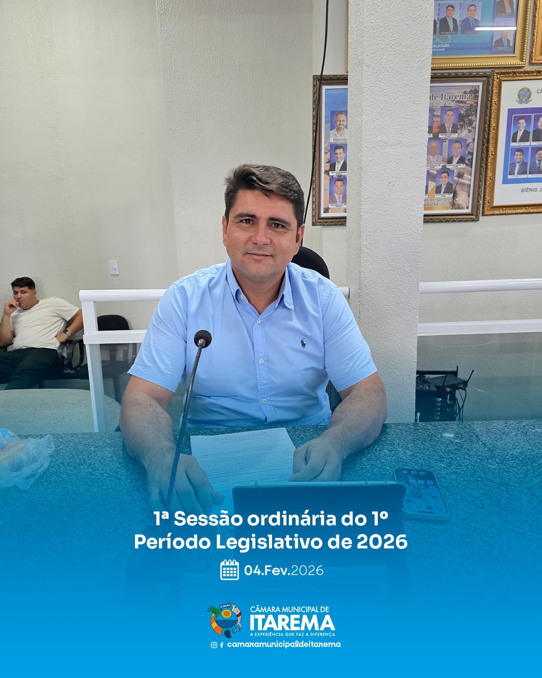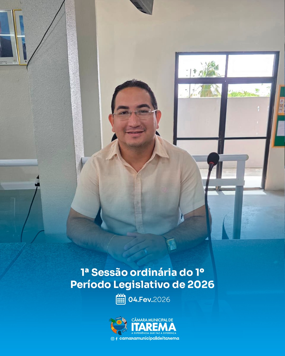 Na 1ª Sessão Ordinária do 1º Período da 2ª Sessão Legislativa da 3ª Legislatura, a Câmara Municipal de Itarema, presidida pelo vereador Carlinhos Beja, deu início aos trabalhos legislativos do período, cumprindo a pauta previamente estabelecida.
